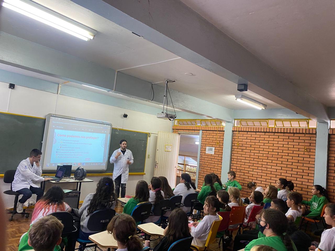 A iniciativa ocorreu no dia 25 de maio, por meio de uma apresentação expositiva sobre hantavirose, na Escola Lourdes Galeazzi. A comunicação foi adaptada para o público infantojuvenil, utilizando linguagem acessível e objetiva. Como complemento, foi produzido um card educativo com informações essenciais e orientações práticas sobre a zoonose, entregue aos professores com o propósito de apoiar a continuidade do aprendizado.