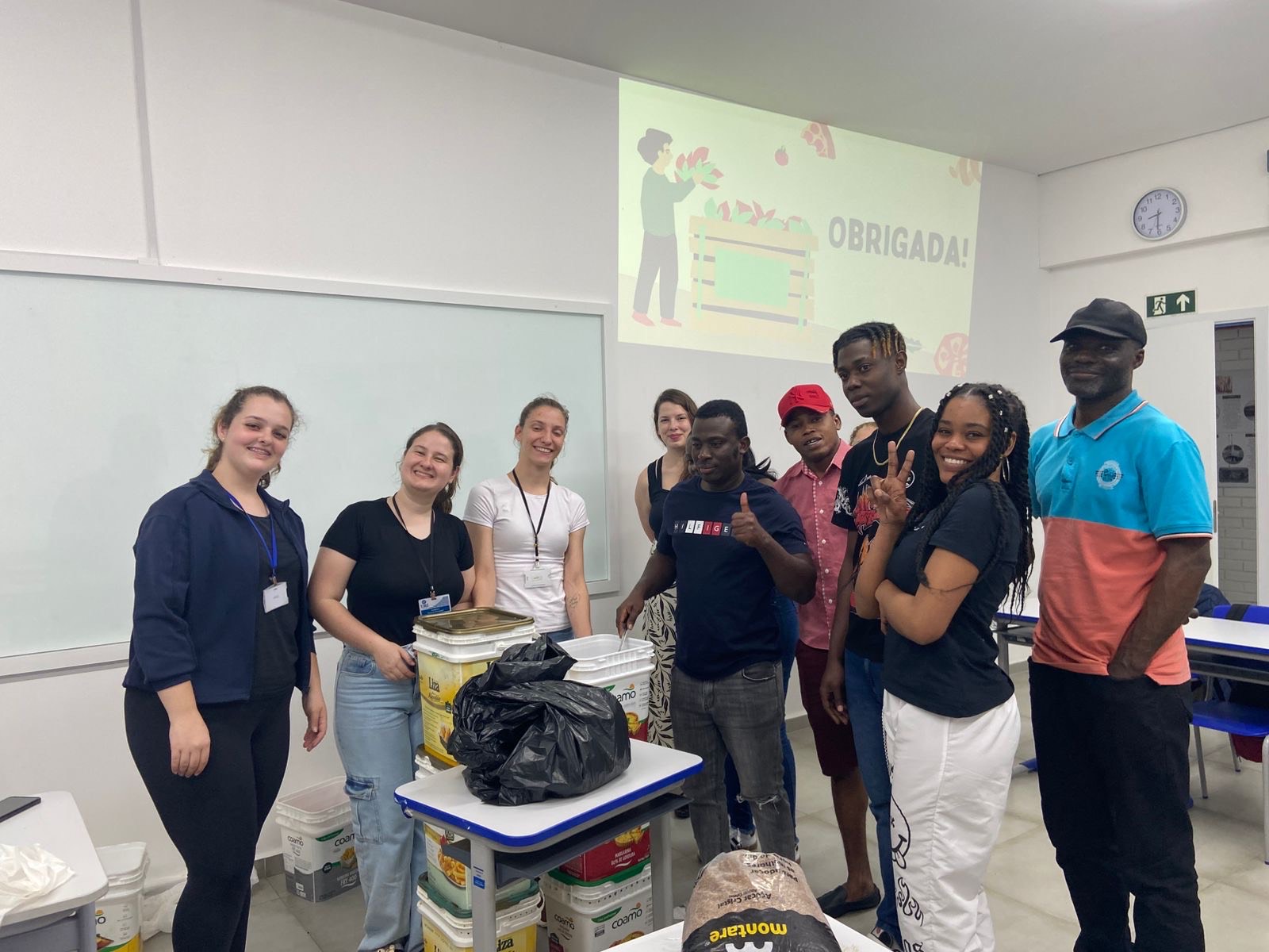 A terceira oficina abordou a compostagem doméstica, explicando como transformar resíduos orgânicos em adubo natural. Além de reduzir o volume de lixo enviado aos aterros sanitários, a prática diminui as emissões de metano, um dos principais gases do efeito estufa.