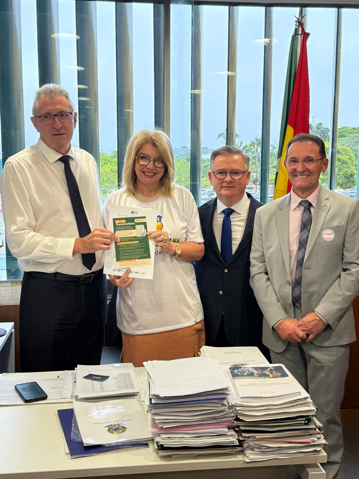 Encerrando as atividades da tarde, a comitiva da Federação Varejista e da CDL Erechim foi recebida pelos integrantes da bancada Gaúcha no Congresso Nacional onde foi entregue a todos os parlamentares o Ofício reivindicando a obra da Trasbrasiliana.