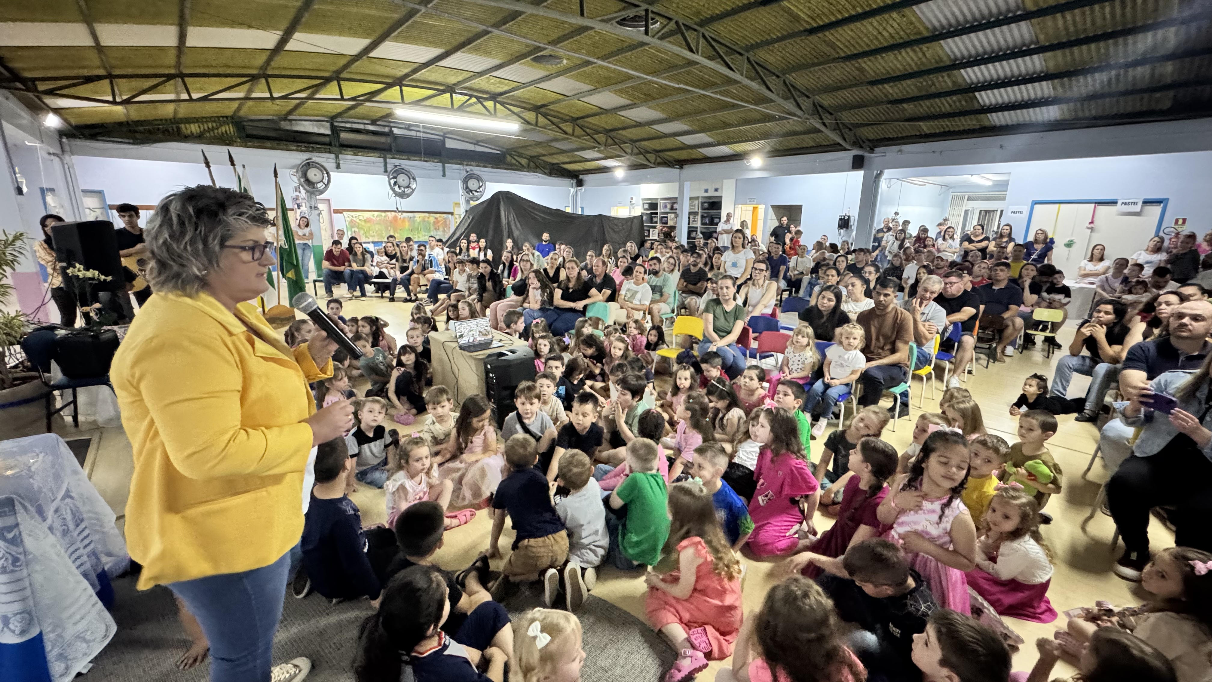 Encerrando a noite, todos os presentes cantaram juntos os parabéns à escola, em um gesto simbólico que reforçou o sentimento de pertencimento e orgulho. Após a solenidade, as famílias puderam visitar a Mostra de Vivências, preparada com projetos, práticas, saberes e experiências das turmas.