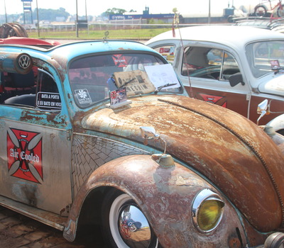 Se tem um estilo de Fusca que chama atenção é sem dúvidas o Rat Look, em que a carroceria enferrujada e outros detalhes deixam o carro como uma verdadeira “lata velha”. “A ideia é quanto mais velho melhor. Mais desleixado, ferrugem, envelhecido. Sempre procuro comprar uma coisa ou outra antiga para retratar a época do meu Fusca, que é de 74. Quando eu peguei ele era todo original, mas eu quis fazer diferente, e aí sempre estou inventando uma coisa ou outra para deixar o máximo no estilo Rat Look” comenta orgulhoso Edgar Oliveira, integrante do Air Cooled de Erechim.
