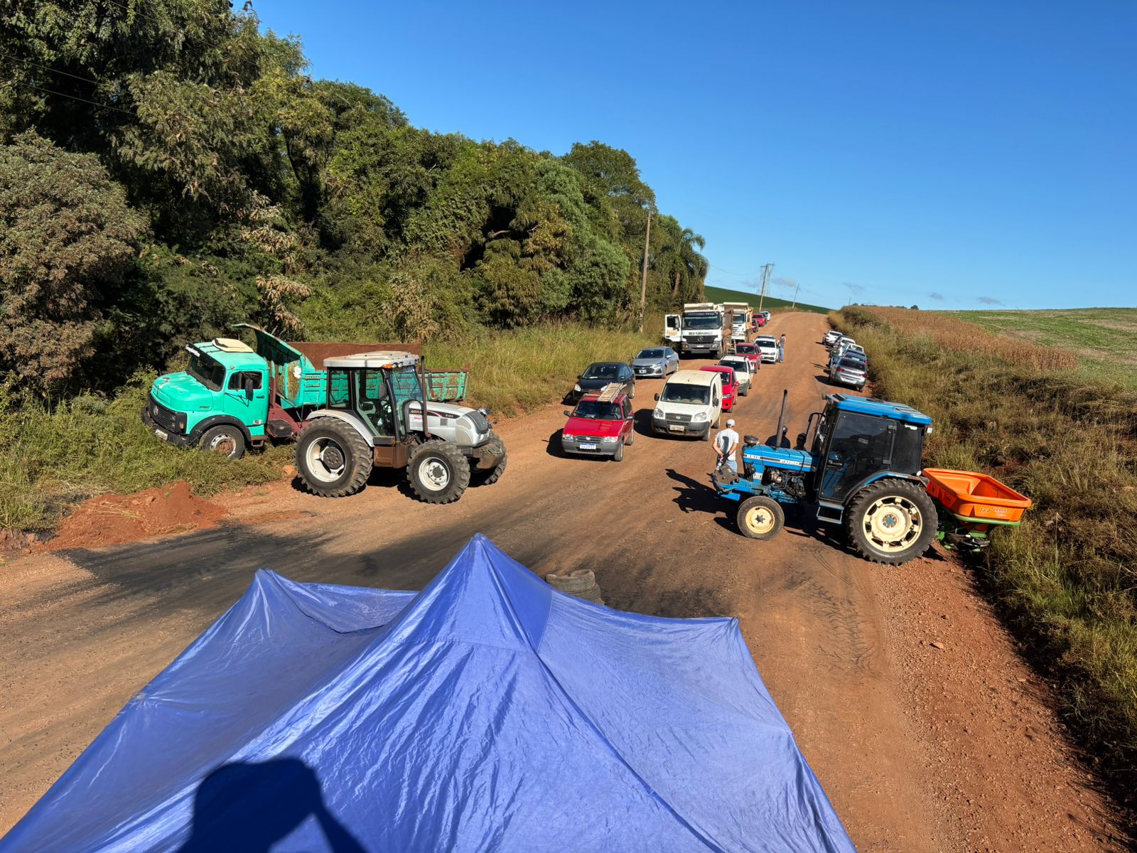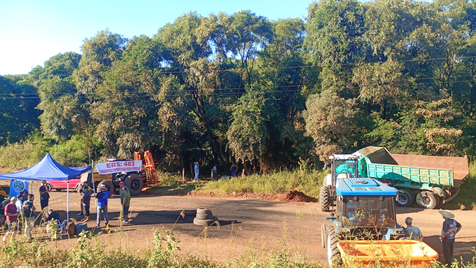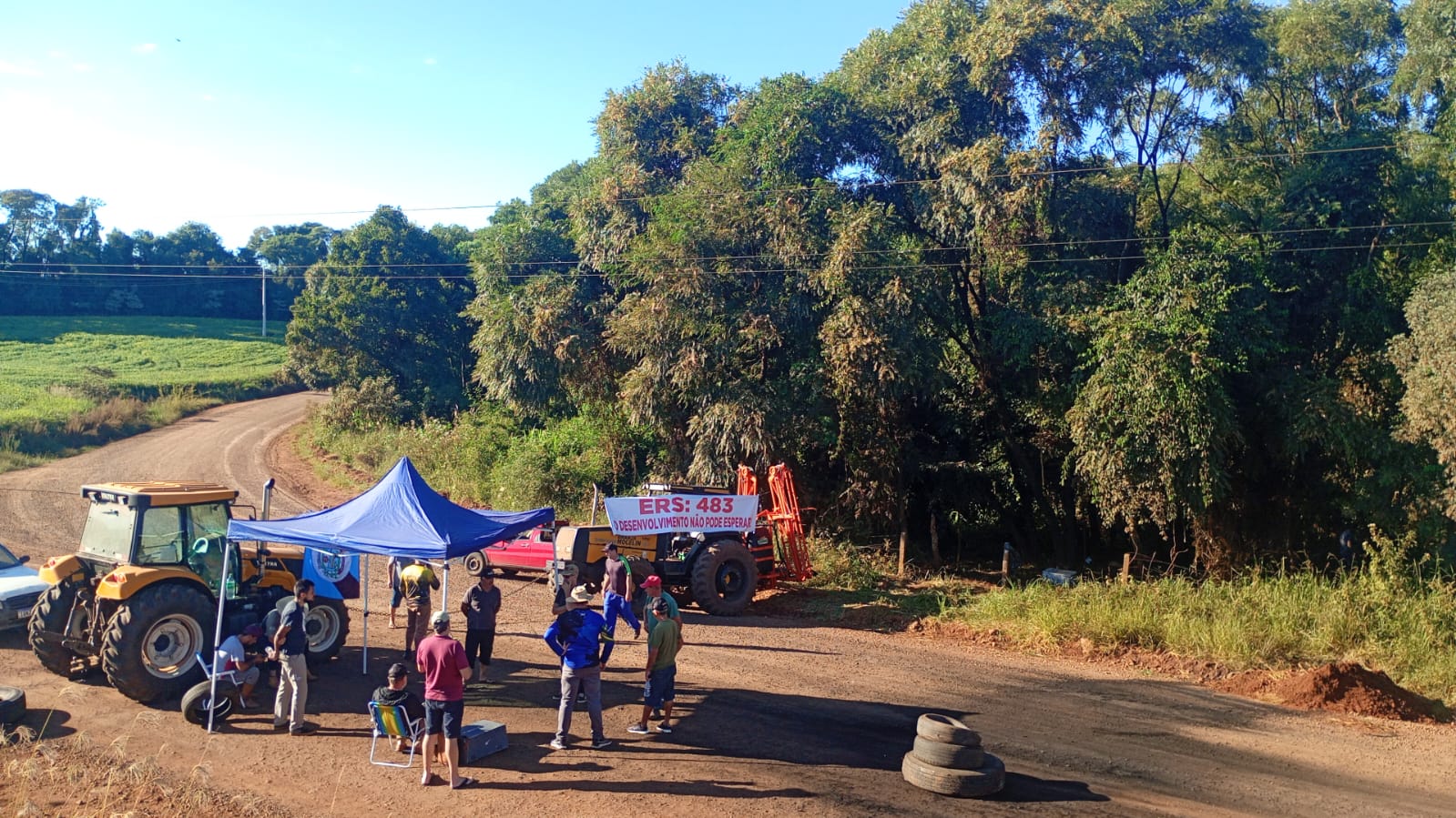 O bloqueio na ERS-483, no entroncamento que liga os municípios de Entre Rios do Sul, Cruzaltense e São Valentim, segue nesta manhã de quinta-feira, 12, com a mobilização da comunidade.