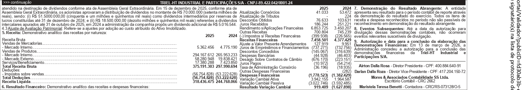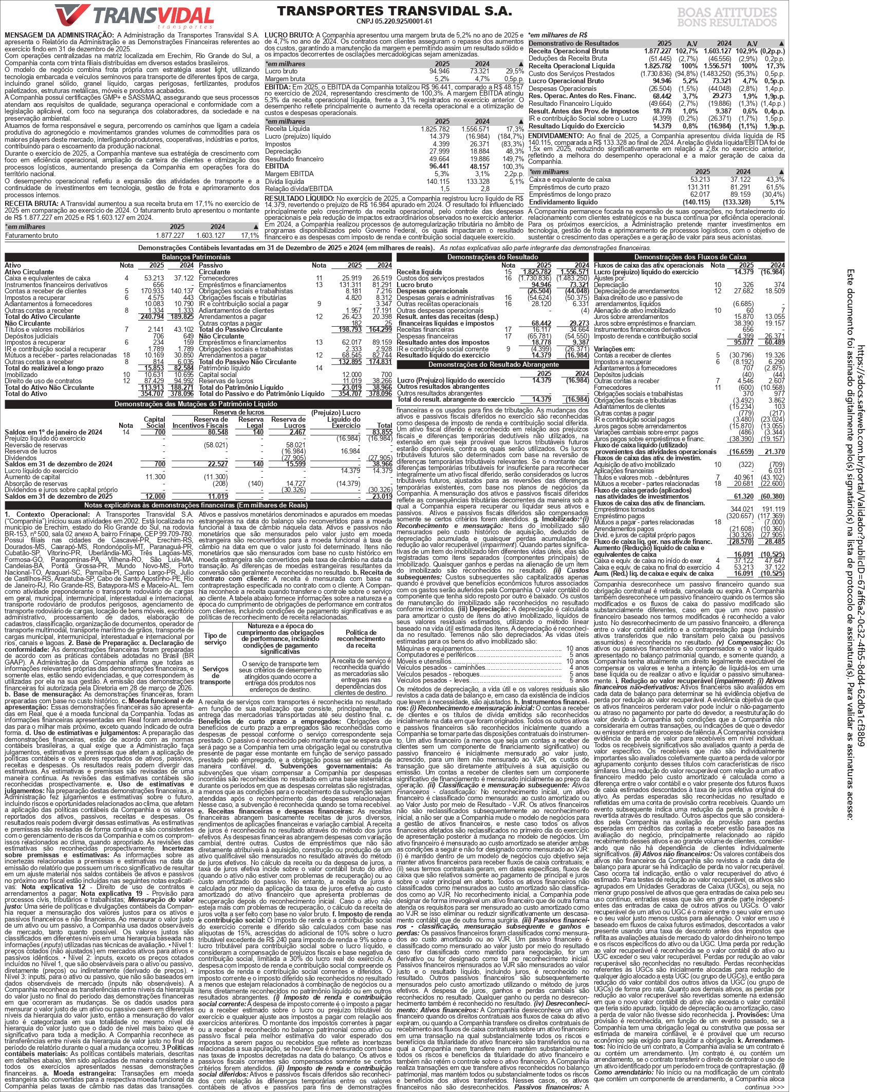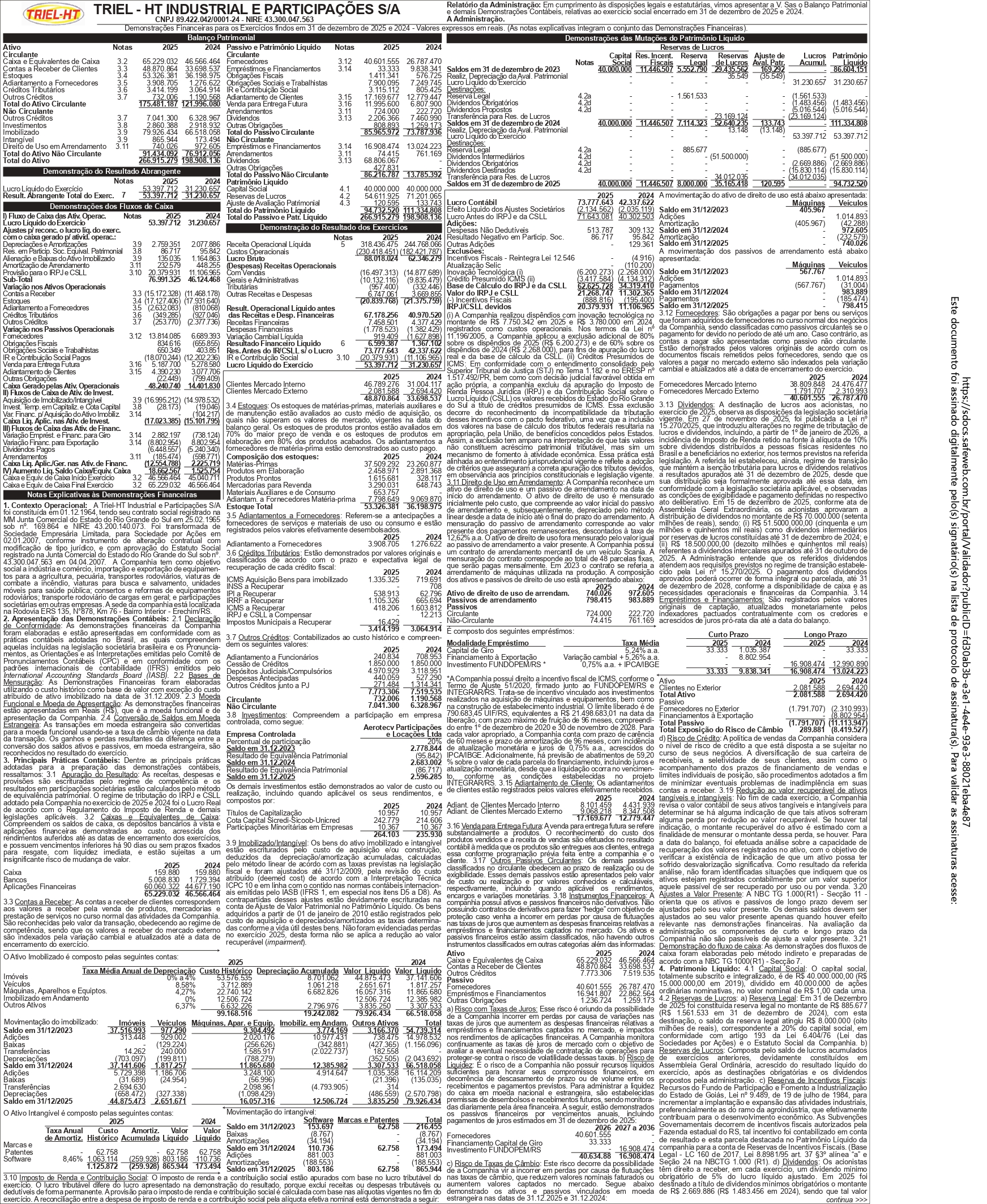Demonstrações Contábeis levantadas em 31 de Dezembro de 2025 e 2024 (em milhares de reais).