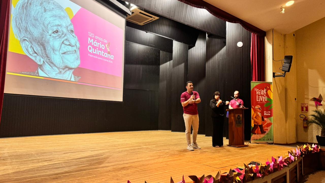 Entre versos, flores e encontros com a palavra, Erechim abriu as portas para mais uma grande celebração da literatura. Na noite desta quinta-feira (15), a Prefeitura realizou, no Salão de Atos da URI Campus Erechim, o lançamento oficial da 27ª Feira do Livro - Jardim do Quintana, marcando o início da contagem regressiva para o evento, que acontece de 1º a 10 de maio, na Praça Prefeito Jayme Lago.