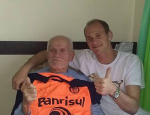 Jairo de Oliveira, 78, recebeu um forte abraço e uma camisa assinada pelo goleiro do Ypiranga