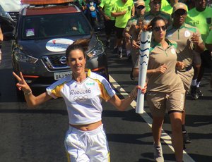 Após a chegada da chama ao ponto final do revezamento, os profissionais do Comitê Organizador e da Força Nacional de Segurança festejaram