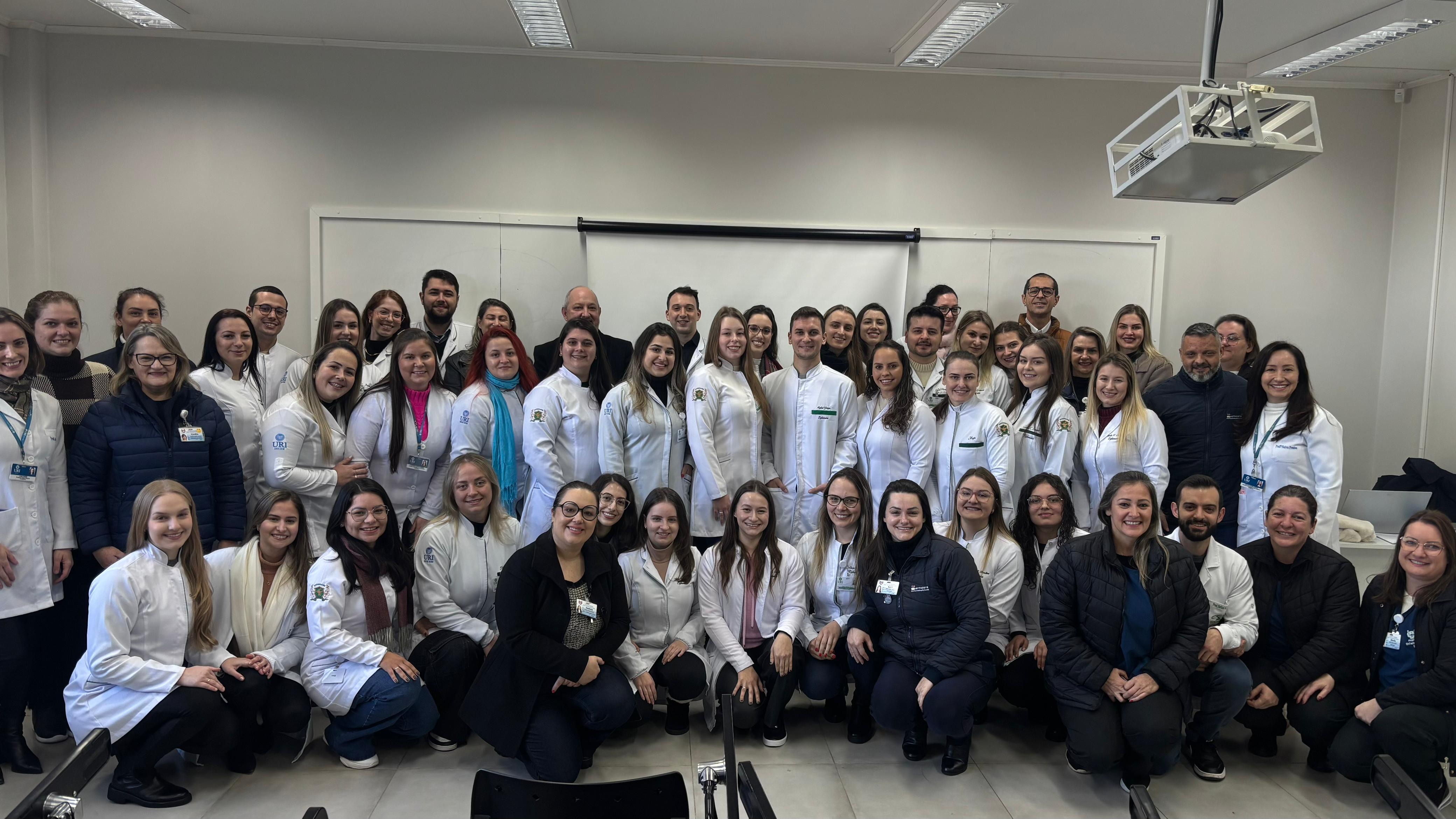 A atividade reuniu estudantes, professores, gestores hospitalares e representantes da universidade, celebrando a conclusão de uma etapa significativa da formação acadêmica