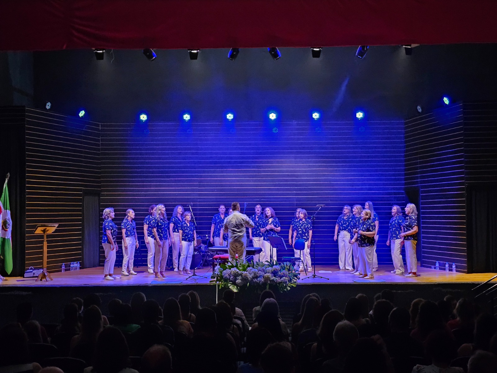 A festividade foi realizada no Cineteatro Cecília Zago Burin, na terça-feira (20), e iniciou com a apresentação de elementos que simbolizam a trajetória dos imigrantes italianos, conduzidos ao palco por representantes dos corais e pessoas da comunidade