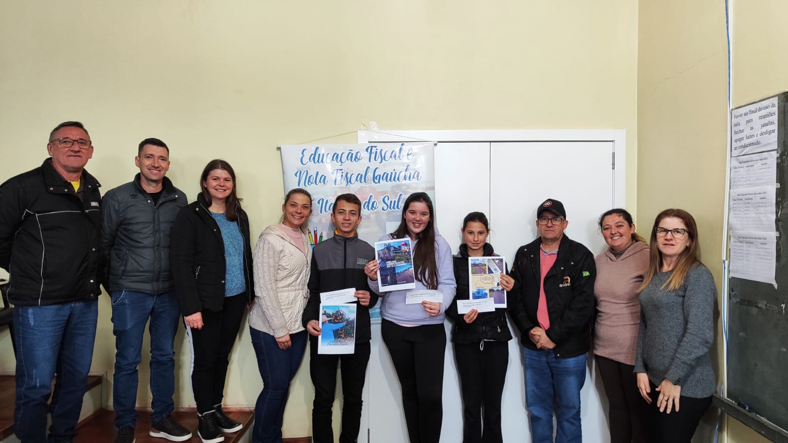 Evento realizado em Barão de Cotegipe abordou a importância da Educação Fiscal na sociedade, bem como na vida dos cidadãos, e que é direito do consumidor receber o cupom fiscal. Grupo de servidores de Itatiba do Sul