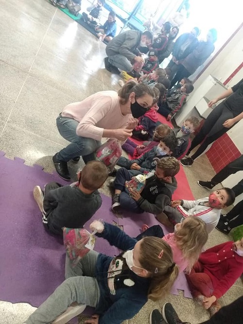Entrega de doces para os alunos da rede municipal de ensino de Itatiba do Sul