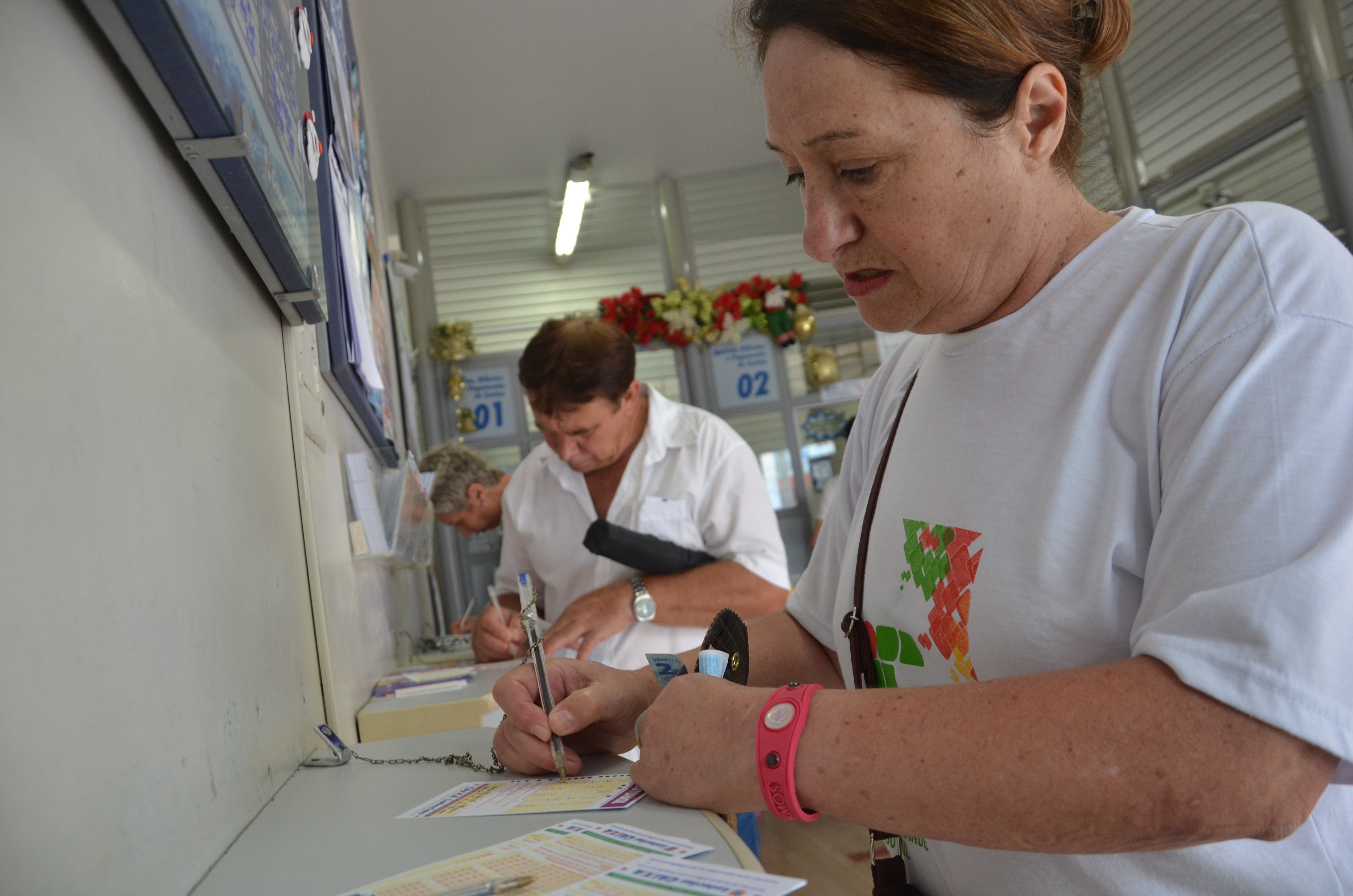 As apostas para garantir uma vida milionária já fazem parte dos rituais de mudança de ano de muitos brasileiros. A funcionária pública Marlene Goglito, diz que joga na Mega-Sena sempre que tem um tempo livre. Apostadora desde a primeira edição do prêmio da virada, Marlene comenta que joga sempre os mesmos números. "Hoje vou fazer dois jogos. Se eu ganhar quero ajudar minha família. Eu nem quero ganhar sozinha, aceito repartir o prêmio", comentou sorridente. O taxista Fernando Moraes, afirma que resolveu jogar por ser a Mega da Virada. "Eu não tenho costume, mas desta vez vou tentar a sorte", destaca. O apostador que comenta que não sabe o que vai fazer com prêmio, lembra que prefere jogar números aleatoriamente. " Vamos tentar e torcer", finaliza sem revelar as dezenas.