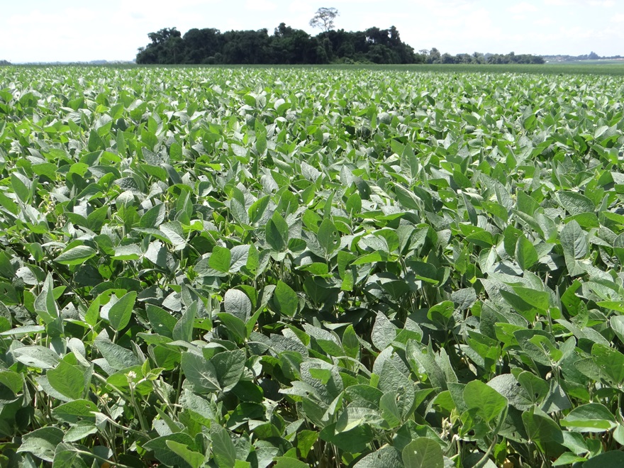 O milho está na fase de floração e enchimento de grãos e apresenta excelente desenvolvimento. A soja está em desenvolvimento vegetativo e também apresenta bom estand de plantas.