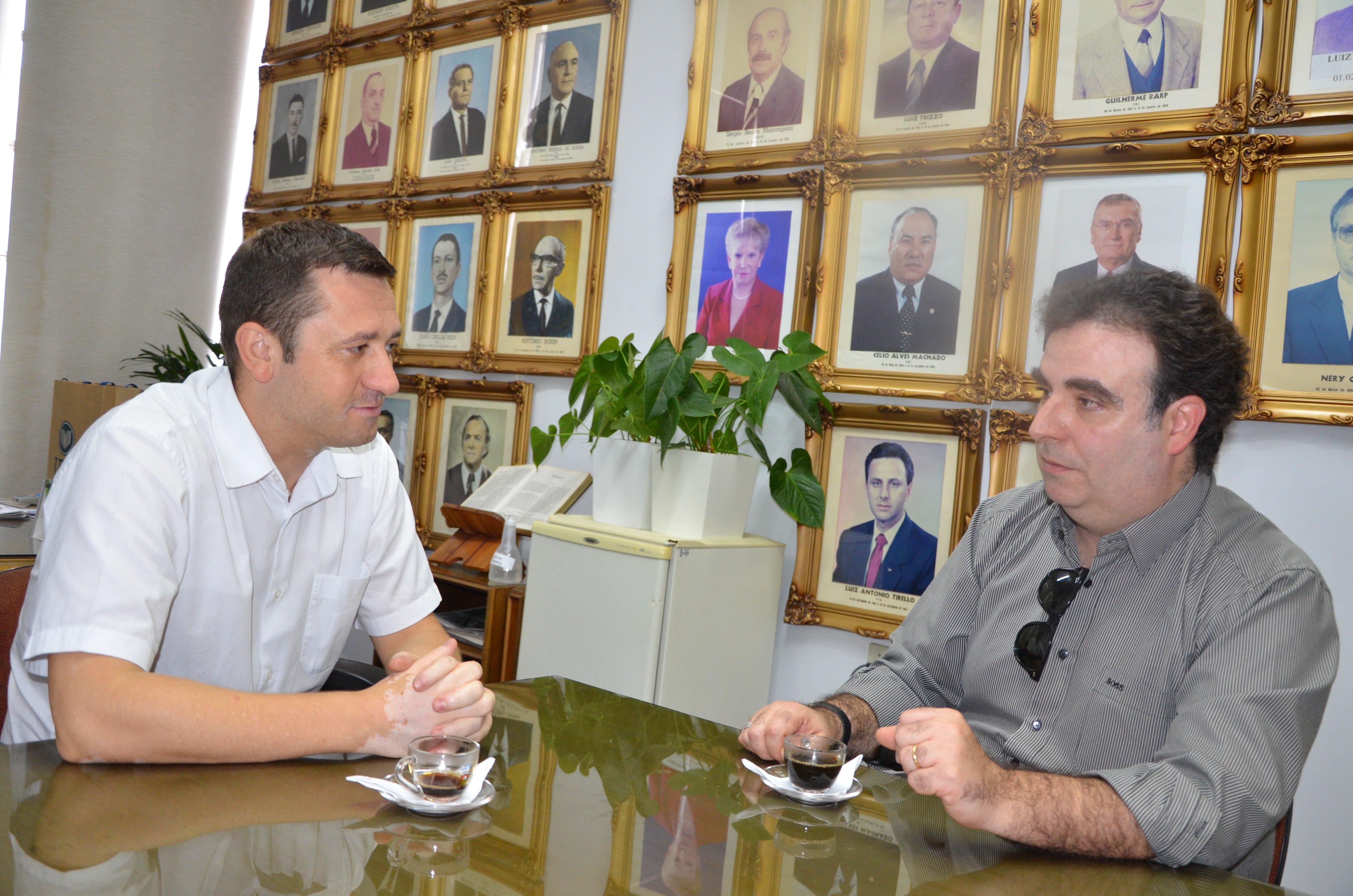 O presidente da Câmara de Vereadores de Erechim Alessandro Dal Zotto (PSB) recebeu a visita do diretor do Instituto Federal do Rio Grande do Sul (IFRS) e presidente da Agência de Desenvolvimento do Alto Uruguai, Eduardo Predebom. No encontro que ocorreu nesta quinta-feira (12) foram discutidas alternativas para a realização de ações que venham fomentar, tanto a área educacional, como o desenvolvimento pleno de Erechim e região ligada a Associação dos Municípios do Alto Uruguai (Amau).