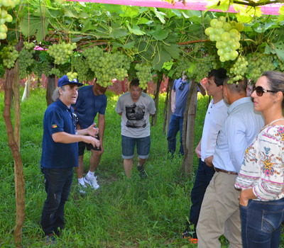 Guiados pelo técnico da Emater e responsável pelo turismo na Festa di Bacco, Walmor Gasparin, os participantes passaram pela propriedade da família Battistela, na qual conheceram a produção de uvas de mesa e o processo de fabricação de vinhos. Mais adiante, estiveram na propriedade da família Bianchi, onde puderam passear pelos parreirais e adquirir uvas.
