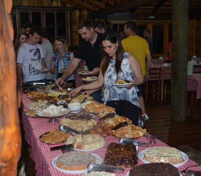 O passeio encerrou no Café Colonial Andreolla e Farina, onde os participantes puderam degustar os mais de 30 pratos produzido pela família Andreolla, além de sucos e vinhos.
