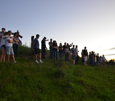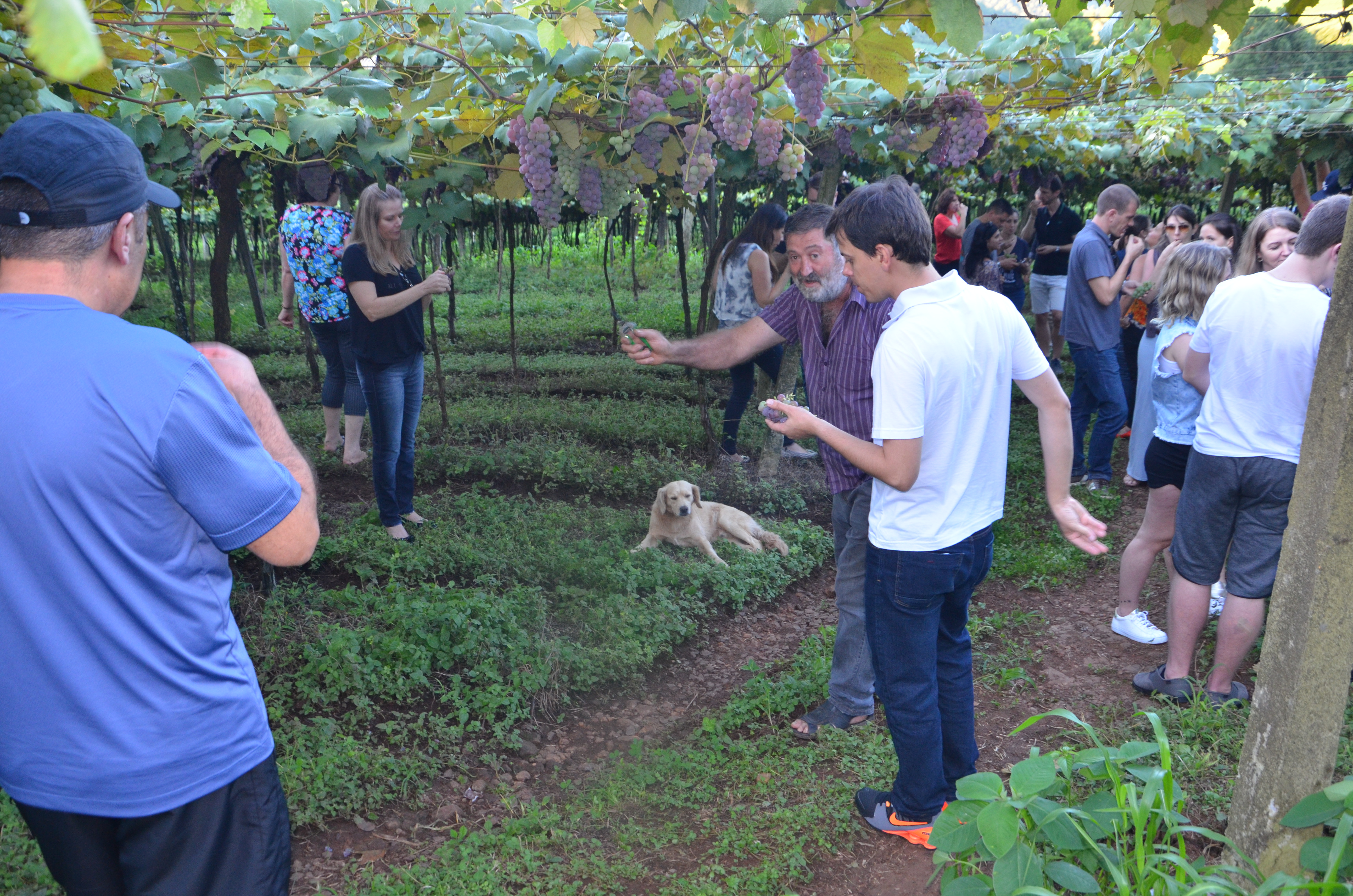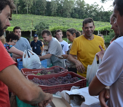 Espontâneo e divertido, conversou com o grupo relatando que quando ainda era bebê já vivia em meio aos parreirais. “Quando nasci, em vez de ganhar leite, minha mãe me deu vinho”, brincou o produtor, arrancando gargalhadas dos visitantes. Logo em seguida, todos foram convidados a se dirigir até o parreiral da família, onde puderam degustar as uvas produzidas e comercializadas pelos Bianchi. Gasparin salientou ainda o exemplo de sucessão rural da família, que tem no jovem Alex Bianchi a projeção de continuidade da produção de uvas. Antes ainda do pôr do sol, o grupo seguiu o caminho com destino a próxima parada.