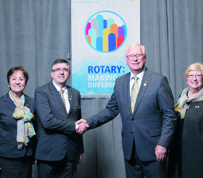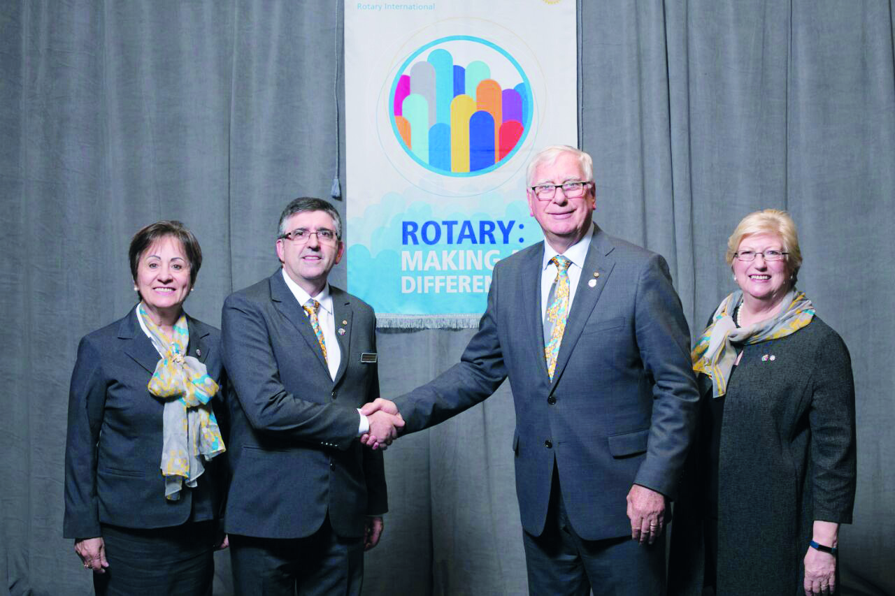 Na foto, Acorsi é cumprimentado pelo futuro presidente mundial do Rotary, Ian Riseley.