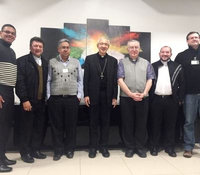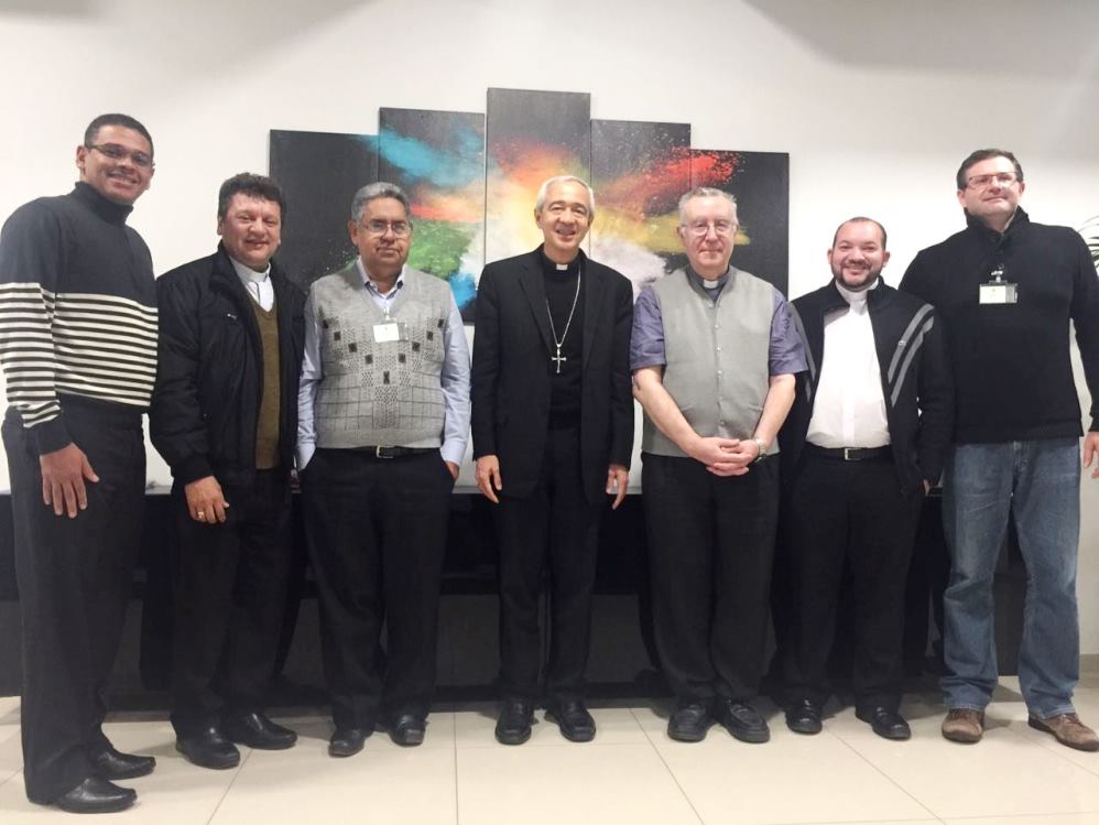 Na foto do grupo de pé, estão com padre Germán Arana Beorlegui, SJ e ao centro Mons. Jorge Carlos Patrón Wong secretário da Congregação para o Clero.