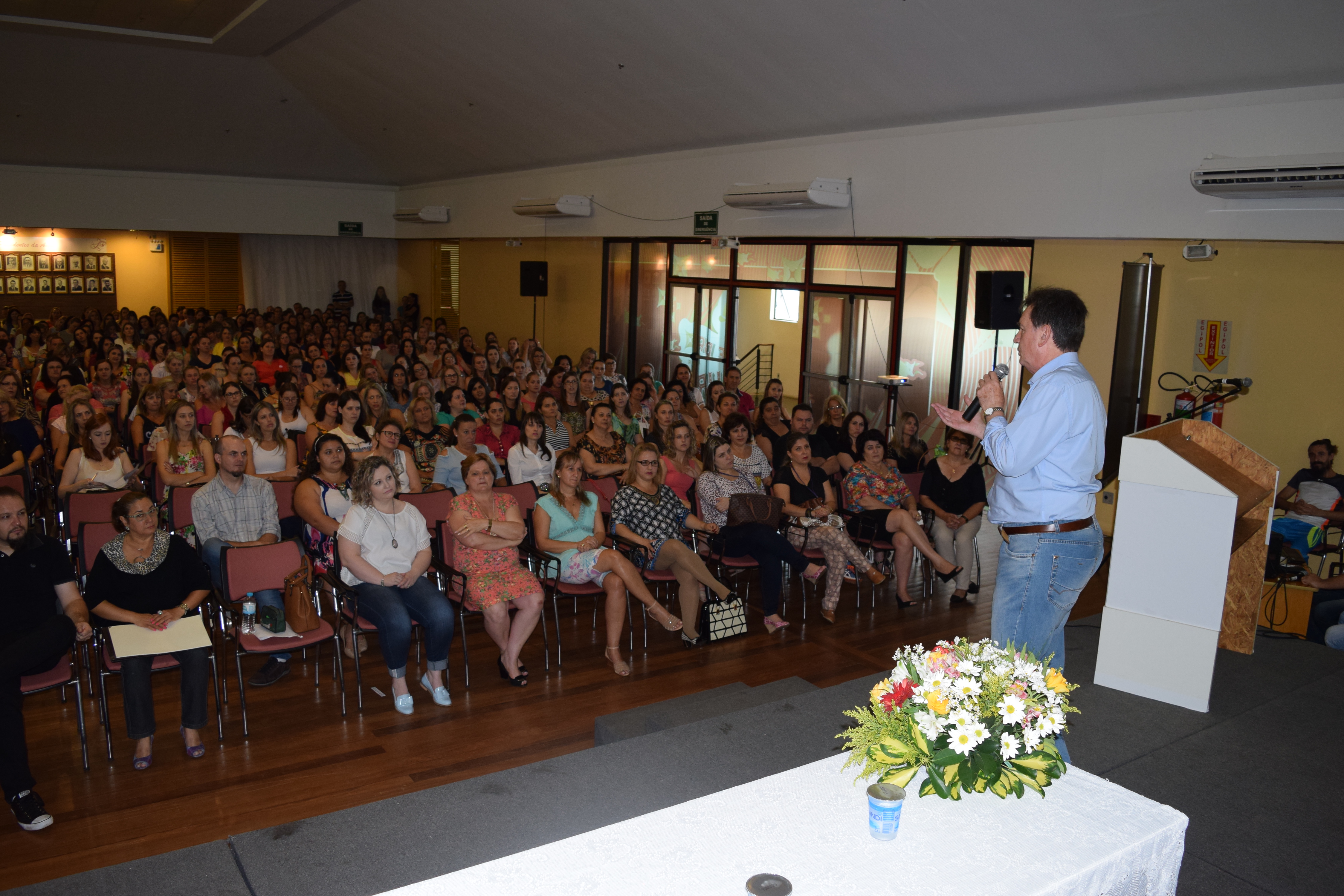 O prefeito Luiz Francisco Schmidt e o vice-prefeito Marcos Lando, compareceram para dar as boas-vindas aos profissionais da Educação.A secretária de Educação Vanir Clara Bernardi Bombardelli, apresentou um quadro panorâmico da educação no município e falou sobre ações prioritárias da sua gestão: alimentação escolar, transporte rscolar, recursos humanos e núcleo tecnológico municipal, visando a garantia da aprendizagem com qualidade. Os quatro temas que nortearão os trabalhos são: o resgate da “Boa” Matemática e do “Bom” Português; Os Cem Anos de Comemoração do Município de Erechim; o Resgate e a Valorização da Experiência dos Mais Idosos e a Matemática Financeira - Direitos e Deveres.
