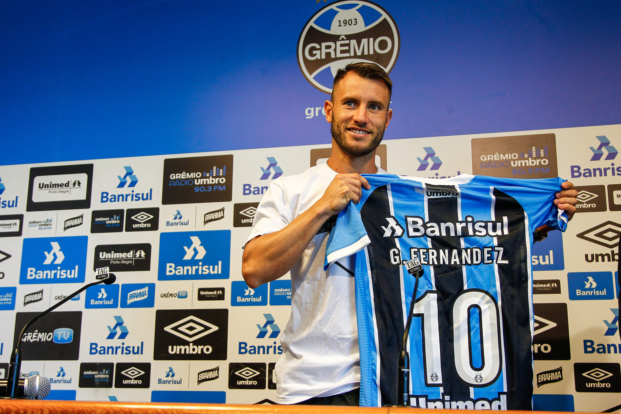 A terça-feira foi de novidade na Arena. O meia Gastón "La Gata" Fernández foi oficialmente apresentado pelo Grêmio. Durante a formalidade, o jogador de 32 anos se definiu como um meia de características ofensivas, e se disse honrado em poder usar a camisa 10 deixada por Douglas, em recuperação após cirurgia no joelho. "Tenho uma camisa com um número muito representativo e vou tentar ser o mesmo jogador que o Douglas. Hoje tenho a possibilidade de cuidar dessa camiseta e estou muito feliz. À torcida, digo que me entregarei ao máximo para ajudar meus companheiros a conseguir os objetivos traçados para este ano", disse.