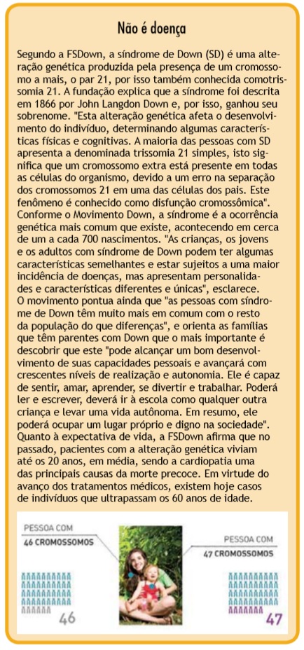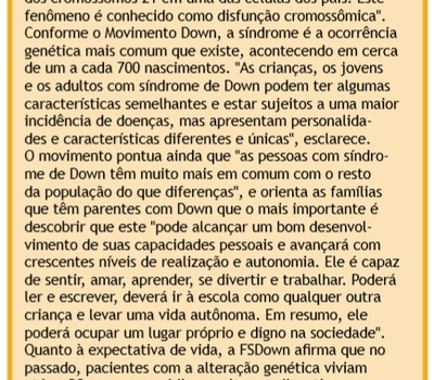 Thomaz tem síndrome de Down, uma alteração genética produzida pela presença de um cromossomo a mais, o par 21, por isso também conhecida comotrissomia 21. Sua condição, porém, nunca lhe impediu de nada. “Ele vive normalmente, é meu grande parceiro, amigo e companheiro. Conversa com todos, tem seus amigos, gosta de desenhar, ouvir música, assistir futebol”, relata a mãe, ao reforçar os mesmos aspectos que a Fundação Síndrome de Down (FSDown) defende: “a síndrome de Down não é uma doença, mas uma condição da pessoa associada a algumas questões que afetam o desenvolvimento do indivíduo, determinando algumas características físicas e cognitivas”.