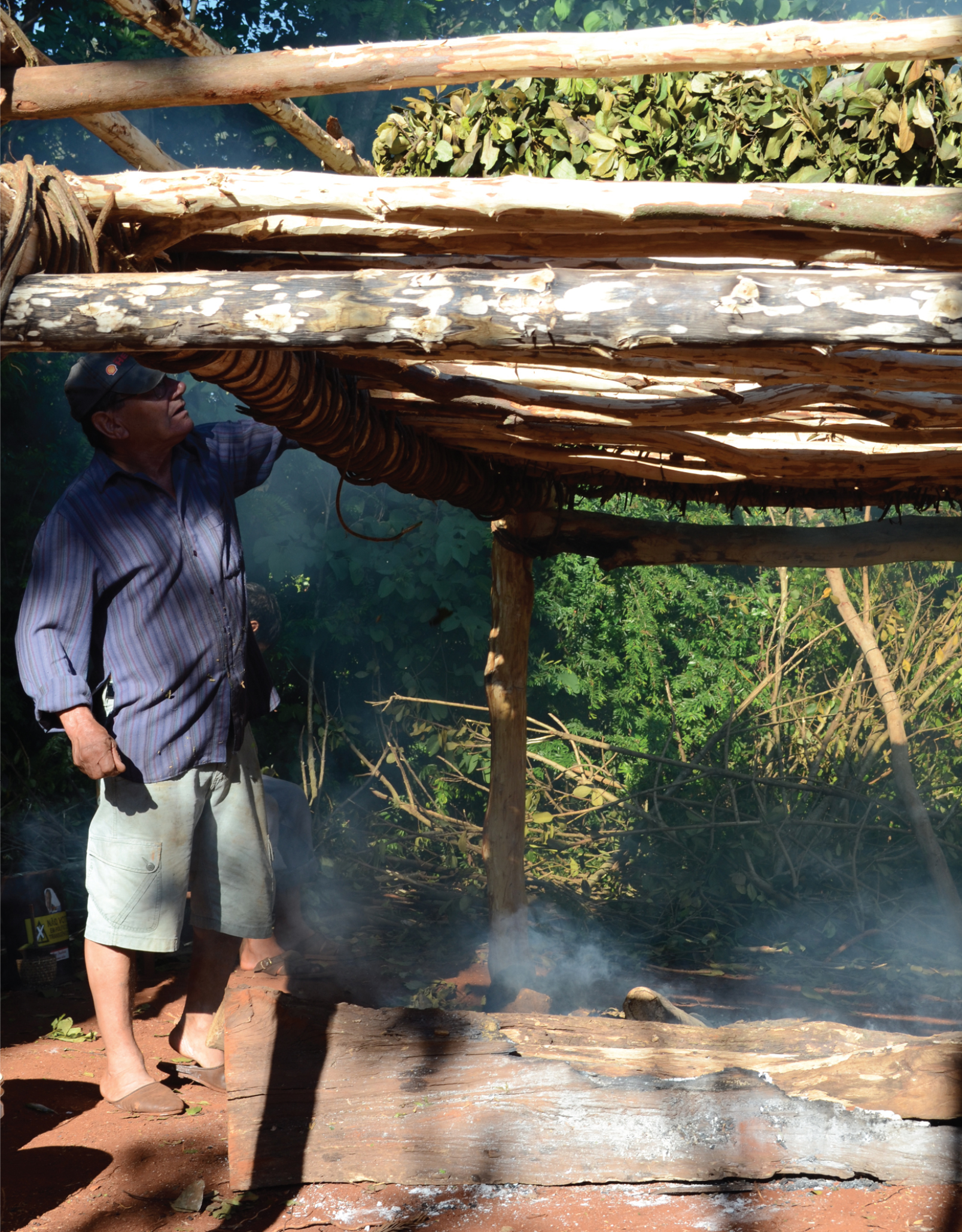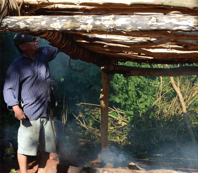 - retorno ao carijo, preparação da erva para sapeco, realização do sapeco, preparação da erva sapecada para colocação no carijo, colocação da erva no carijo