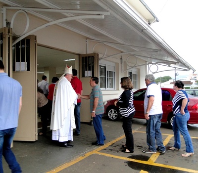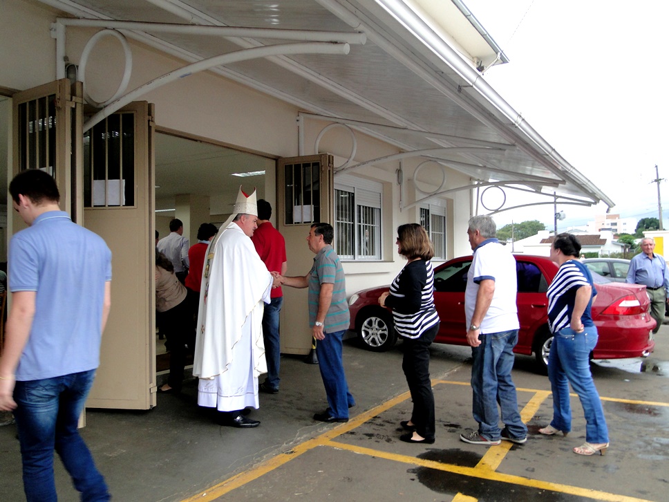 Elevado número de fiéis participou da missa de Páscoa no início da manhã nublada deste domingo (16) no espaço provisório de celebrações do Santuário de Fátima, presidida pelo Bispo diocesano e concelebrada pelos padres do Seminário, Valter Girelli e Giovani Momo. Como de costume, Dom José estava um tempo antes de iniciar a missa acolhendo as pessoas na entrada do recinto, acompanhado dos dois padres.