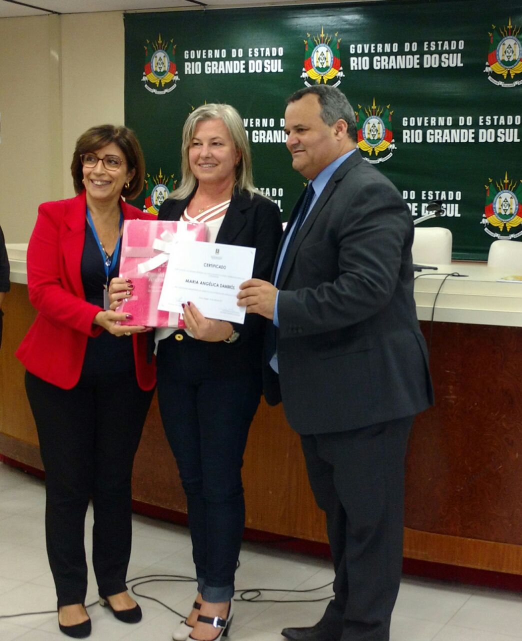A assessora da 15ª Coordenadoria Regional de Educação (CRE), Claire Lourdes Bresolin recebeu nesta semana um prêmio do Sistema Estadual de Bibliotecas Escolares (Sebe), pelo trabalho de revitalização destes espaços em escolas da região. O reconhecimento de melhor trabalho entre as 30 CREs do Estado ocorreu durante o seminário de abertura da “Semana estadual do livro e incentivo à leitura: professor, o protagonista”, realizado na última terça-feira (18), em Porto Alegre.