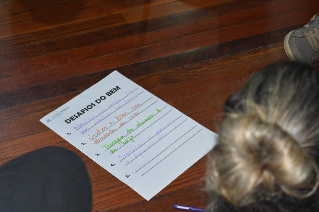 No segundo momento, a escola reforçou os conceitos de infância e juventude que permeiam as ações da Rede Marista, e também propôs uma dinâmica que envolveu os pais em um momento de diálogo entre famílias, em que foram divididos em grupos e tiveram a tarefa de debater e elaborar cinco Desafios do Bem, para serem desenvolvidos no período de um mês, juntamente com os filhos. Foi dado como exemplo o Desafio da Baleia Amarela, criado pelo Grêmio Estudantil do Colégio, que reforça a importância de se comprometer com o bem-estar e com a vida.