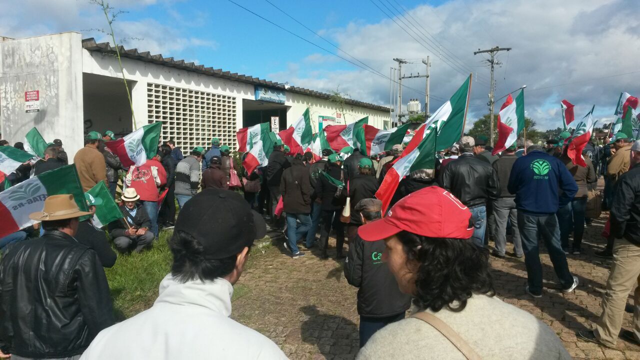 Com uma temperatura na casa dos 20ºC e tempo bom, ao contrário da chuva de ontem, por volta das 8h, os trabalhadores rurais começaram a chegar no Trevo da BR-392, em São Sepé. Ao se deslocarem em caminhada ao centro da cidade, a primeira parada foi em uma reunião da FAMURS, ocasião em que uma comitiva de lideranças, tendo à frente o presidente da FETAG, Carlos Joel da Silva, foi dada a oportunidade de se manifestar aos prefeitos da região, pedindo apoio para que o governo federal não mexa em direitos adquiridos dos segurados especiais.