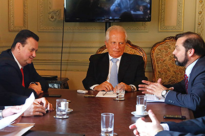 O ministro das Cidades, Gilberto Kassab, foi recebido pelo governador em exercício José Paulo Cairoli nesta segunda-feira (25). Na reunião de trabalho no Palácio Piratini, com a participação de secretários estaduais, do presidente da Famurs, Luiz Carlos Folador, e de prefeitos que integram a direção da entidade, o grupo debateu os investimentos do Ministério para o Rio Grande do Sul.