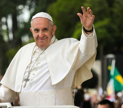 Quando o papamóvel surgiu no Recinto do Santuário, os sinos repicaram, levando os fiéis a saudar o papa Francisco com gritos de alegria e entusiasmo. Cantando e rezando, num coro estimulado pelos alto-falantes, as pessoas levantaram bandeiras multicoloridas de diversos países e de grupos de peregrinos de diferentes origens. O percurso não demorou mais de 15 minutos, até que o carro papal estacionou frente à Capelinha das Aparições.
