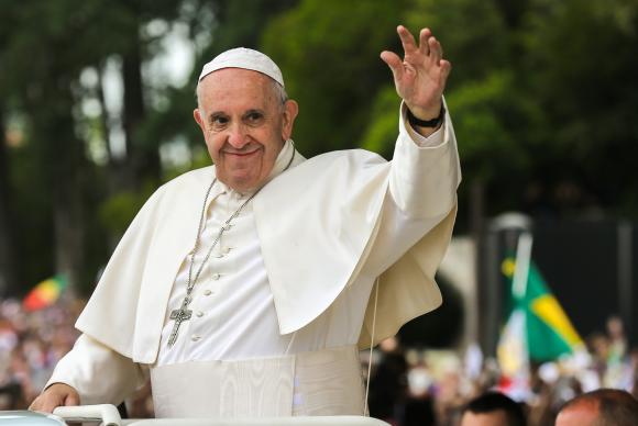 Usando batina branca, Francisco desceu, cumprimentou os religiosos que o cercaram e entrou na capela onde, de pé, frente à imagem da Virgem de Fátima, rezou em silêncio durante cerca de 10 minutos.