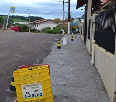 A Secretaria de Obras está realizando melhorias nos passeios públicos em Ipiranga Sul. O objetivo é melhorar a acessibilidade dos usuários e embelezar a cidade.