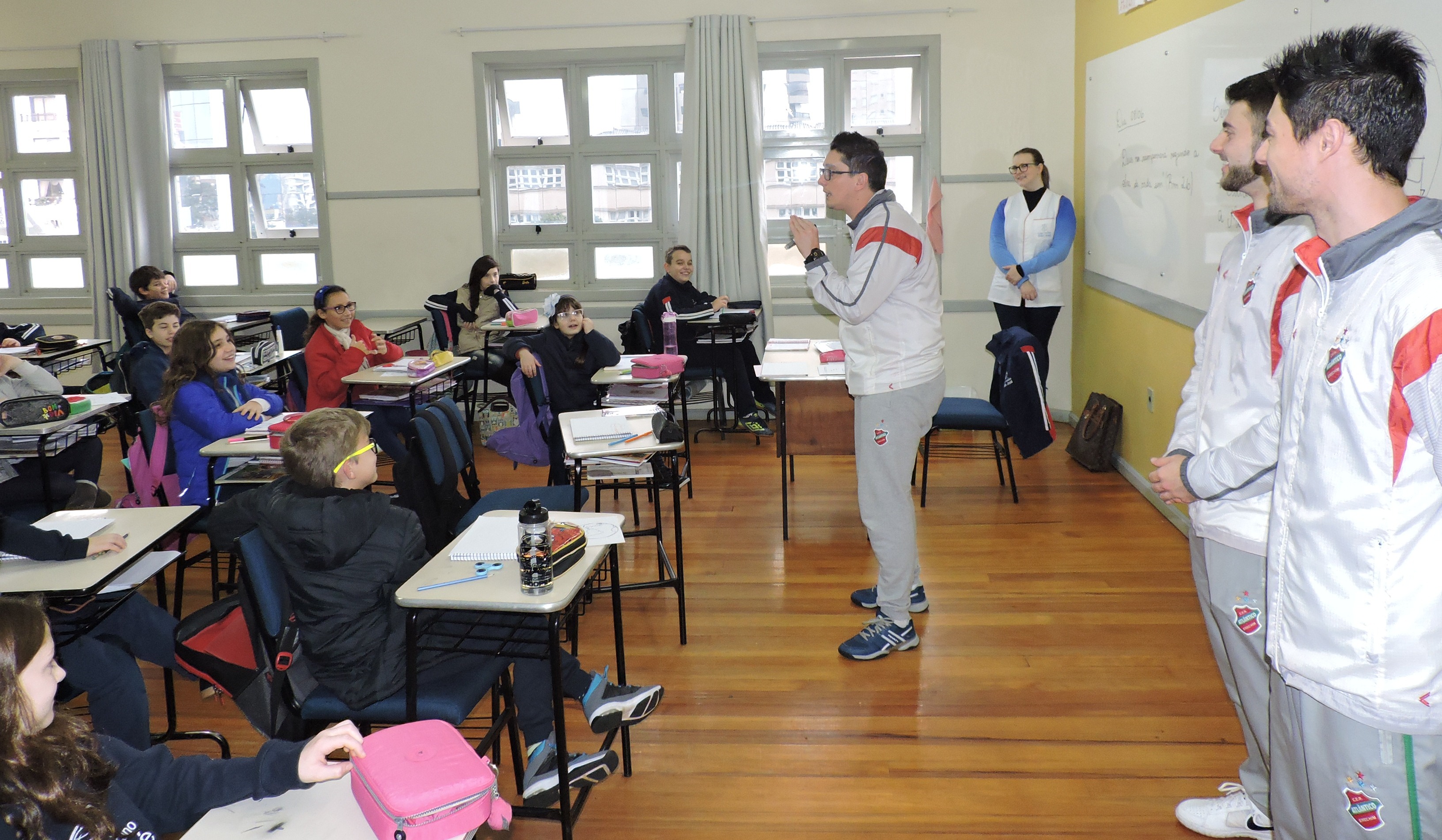 A importância da amizade, do respeito às diferenças, da disciplina, do cuidado com a família, entre outros valores, foram repassados e reforçados por desportistas aos estudantes do 1º ao 9º ano do Colégio Franciscano São José. O bate-papo informal com integrantes da Comissão Técnica e jogadores do Atlântico Futsal ocorreu durante os meses de maio e junho e teve o objetivo de divulgar o trabalho de socialização que o clube desenvolve na sociedade, por meio de sua Escolinha.