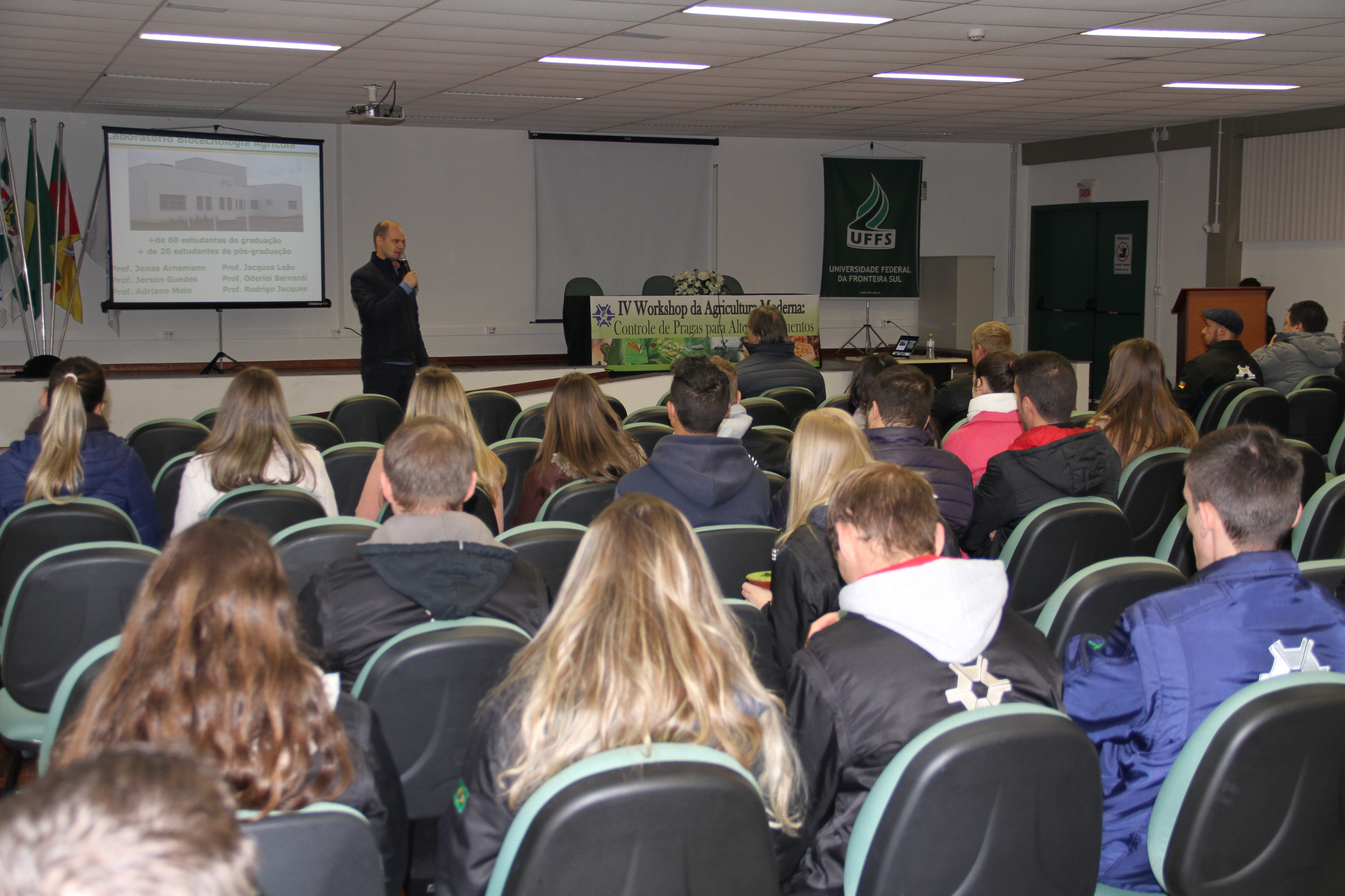 Aconteceu na Universidade Federal da Fronteira Sul (UFFS) – Campus Erechim, a quarta edição do workshop de agricultura moderna. O evento, organizado pelo Diretório Acadêmico do curso de agronomia, teve como tema “Controle de pragas para altos rendimentos”. A programação contou com quatro palestras ministradas por diferentes profissionais das seguintes instituições: UFRGS, UFSM, Epagri e Embrapa.