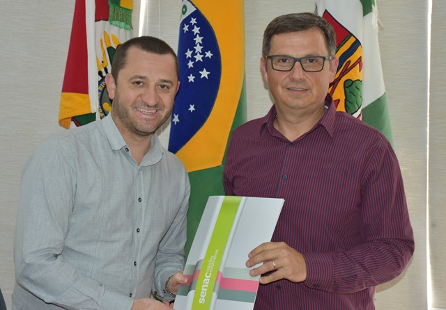 O presidente do Poder Legislativo, vereador Ale Dal Zotto recebeu, na Sala da Presidência, nesta segunda, o Diretor do Senac, Leandro Bianchi que busca, através de projeto em fase de iniciação, valorizar a rotas do Alto Uruguai pelos Caminhos do Vale Dourado.