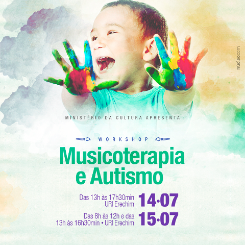 A Associação Aquarela Pró-Autista promove o segundo workshop deste ano dentro do Projeto Pró-Autista Oficinas Culturais, desenvolvido em parceria com o Ministério da Cultura, patrocínio do Grupo Vaccaro e apoio da URI Erechim e do Observatório Cultural Local. “Musicoterapia e Autismo” é o tema do evento que acontece nos dias 14 e 15 de julho, na URI Erechim.