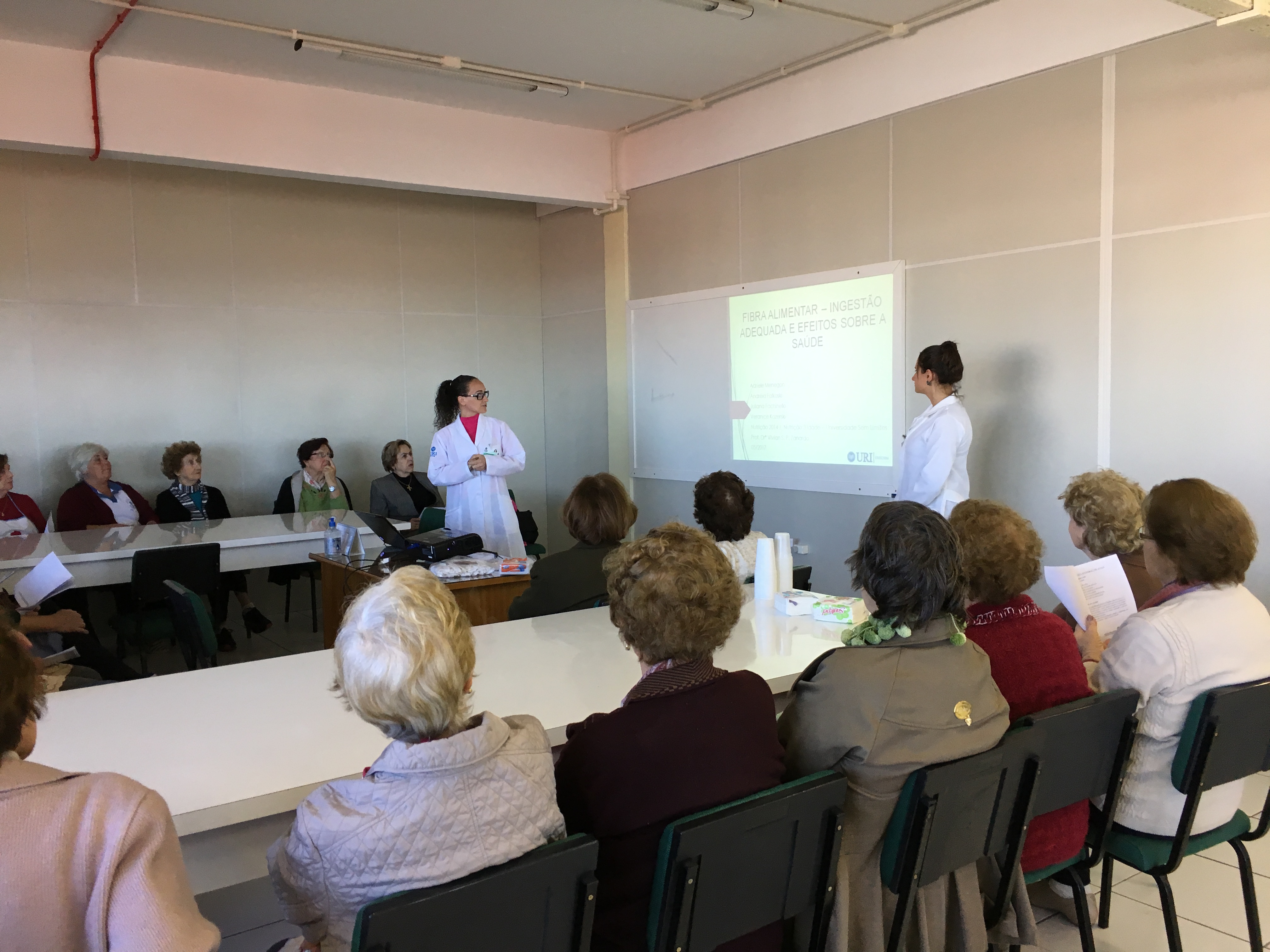 Acadêmicas do curso de nutrição (2014), realizaram uma atividade de educação nutricional com as integrantes do projeto Universidade Sem Limites da URI Erechim. A ação foi desenvolvida pelas acadêmicas, Adriele Menegon, Andréia Falkoski, Juliana Fachinello e Veranice Kozers, supervisionadas pela coordenadora do curso, Vivian Zanardo, dentro da disciplina de nutrição na terceira idade.