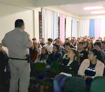 Durante a semana foram realizadas diversas atividades, a exemplo do momento de conversa das turmas de sexto ano com as representantes da Cipave da 15ª CRE, professoras Miriam De Grandi e Marcia Roman. Também aconteceram palestras ministradas pelo Sargento Emerson Santarém sobre prevenção ao uso de drogas, das quais participaram as turmas de ensino médio noturno.