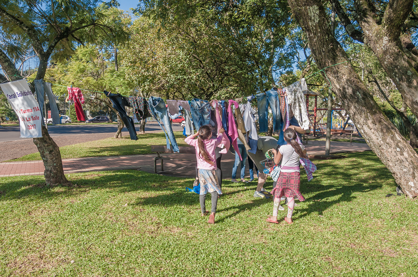 Desde o último mês os estudantes do primeiro ano do ensino fundamental da Escola Estadual São João Batista de La Salle contam com o seu “varal solidário”, localizado na Praça Jayme Lago (Praça dos Bombeiros), no centro de Erechim. A iniciativa vem sendo realizada junto com a professora Eliana Chiaradia da Silva e com os familiares dos alunos.