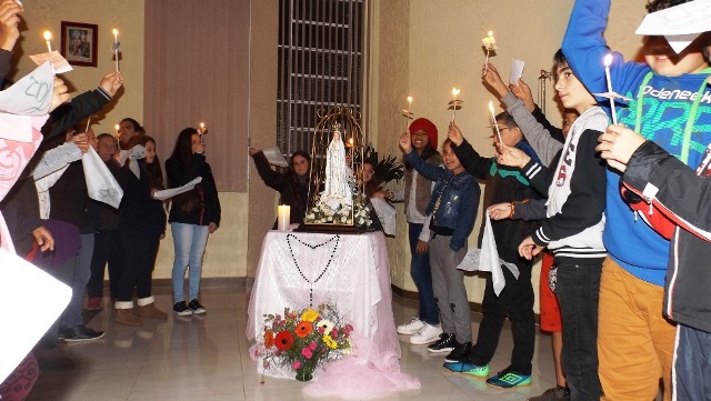 Depois de dez dias de peregrinação pelas comunidades, escolas e outras entidades do Bairro Progresso, na sexta-feira (7),um grupo de fiéis levou a imagem peregrina de Nossa Senhora de Fátima até a comunidade Sagrado Coração de Jesus, da Paróquia São Cristóvão, na qual permanecerá até o dia 23 deste mês, festa do padroeiro. Na peregrinação pelo Bairro Progresso, a imagem foi acolhida com muito carinho e piedade como sinal representativo de nossa Senhora, que sempre motiva para o encontro com seu Filho Jesus.
