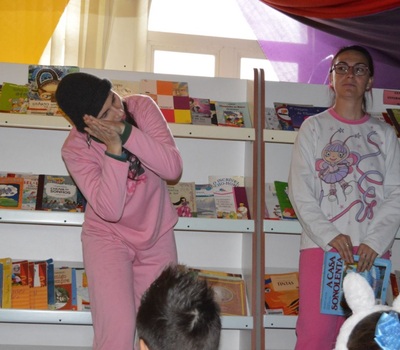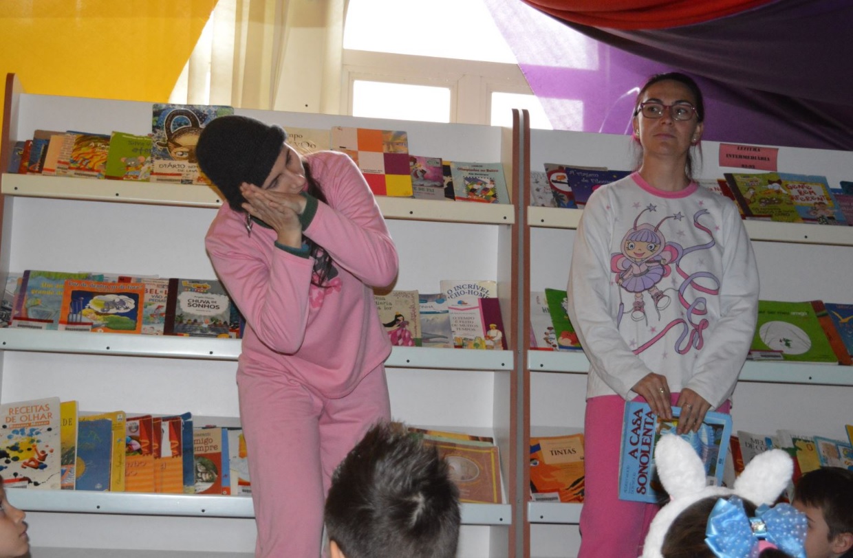 Enquanto eles ouviam a história, tinham que voltar a atenção e visão para os gestos e sinais que iam sendo apresentados através da Língua Brasileira de Sinais (LIBRAS), de acordo com os acontecimentos do livro. A obra trabalhada foi A casa sonolenta, de Audrey Wood.