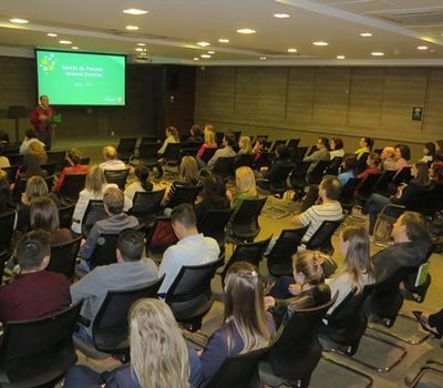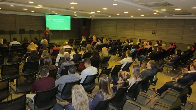 A coordenadora de Gestão de Pessoas, Elisete Fronza, iniciou sua palestra ressaltando que gestão de pessoas é um tema desafiador para qualquer empresa: “não existe uma receita própria para esse assunto, mas cada empresa tem sua filosofia para colher melhores resultados. As ações promovidas pela área de Gestão de Pessoas devem conduzir para o cumprimento de suas metas e a sustentabilidade do negócio”. Elisete frisou a necessidade de potencializar pessoas para que se engajem cada vez mais em suas tarefas: “as pessoas atuam de forma diferenciada, vibram com as conquistas, estão sempre motivadas e dedicam-se além das tarefas de seus cargos. Esse alinhamento é muito forte para se buscar os resultados esperados”.