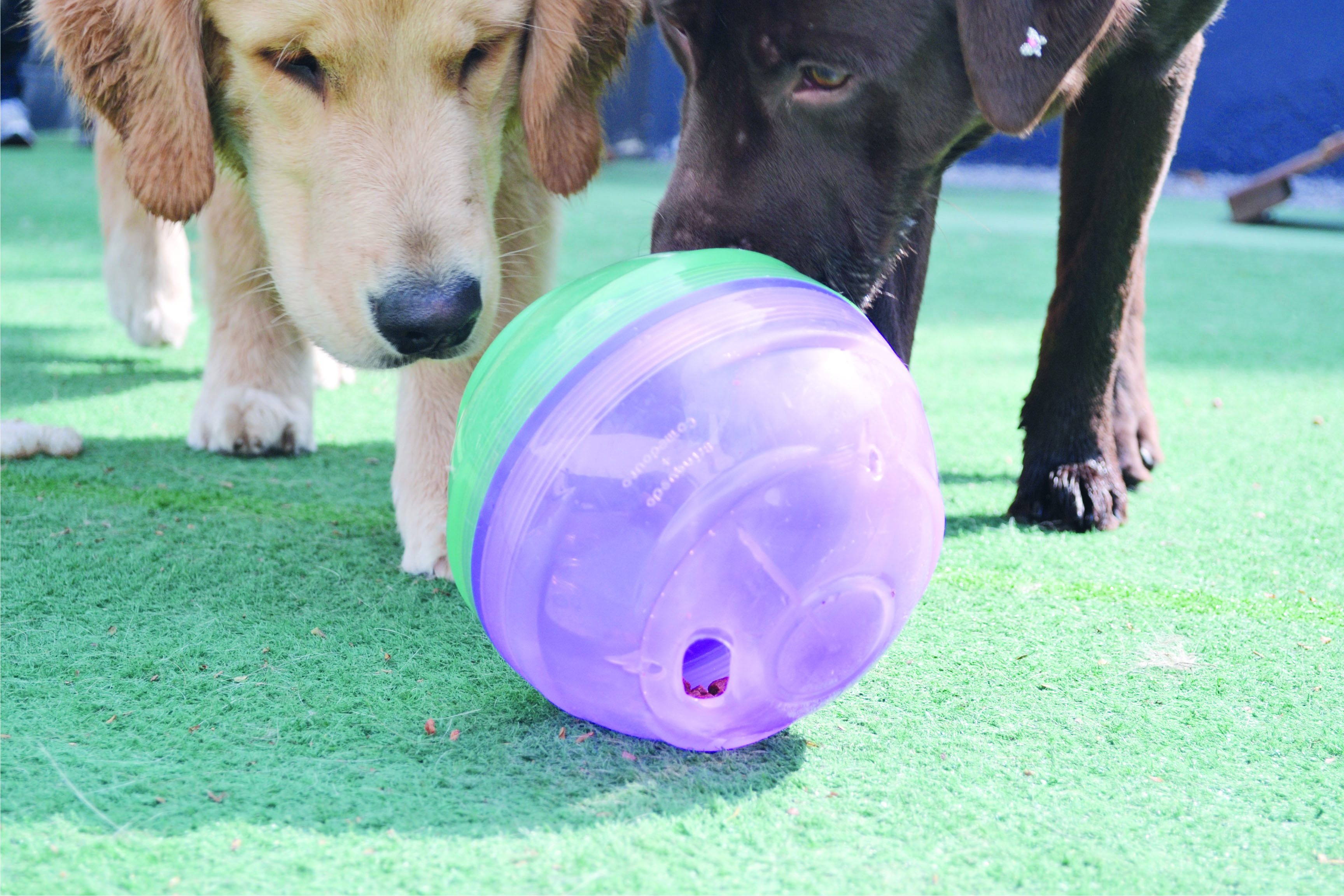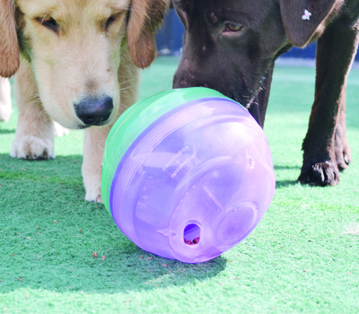 Também existe um comedouro ocupacional, em que o pet exercita o instinto de caçar alimentos. A ração deve ser depositada no interior da bola (Pet Ball) e o animal se diverte descobrindo como tirar o alimento para consumi-lo. O brinquedo possui pequenos furos que dissipam o odor dos alimentos e estimula o faro dos pets. Quando a bola rola, um som característico atiça a audição do animal e por tratar-se de um produto translúcido estimula-se também a visão.