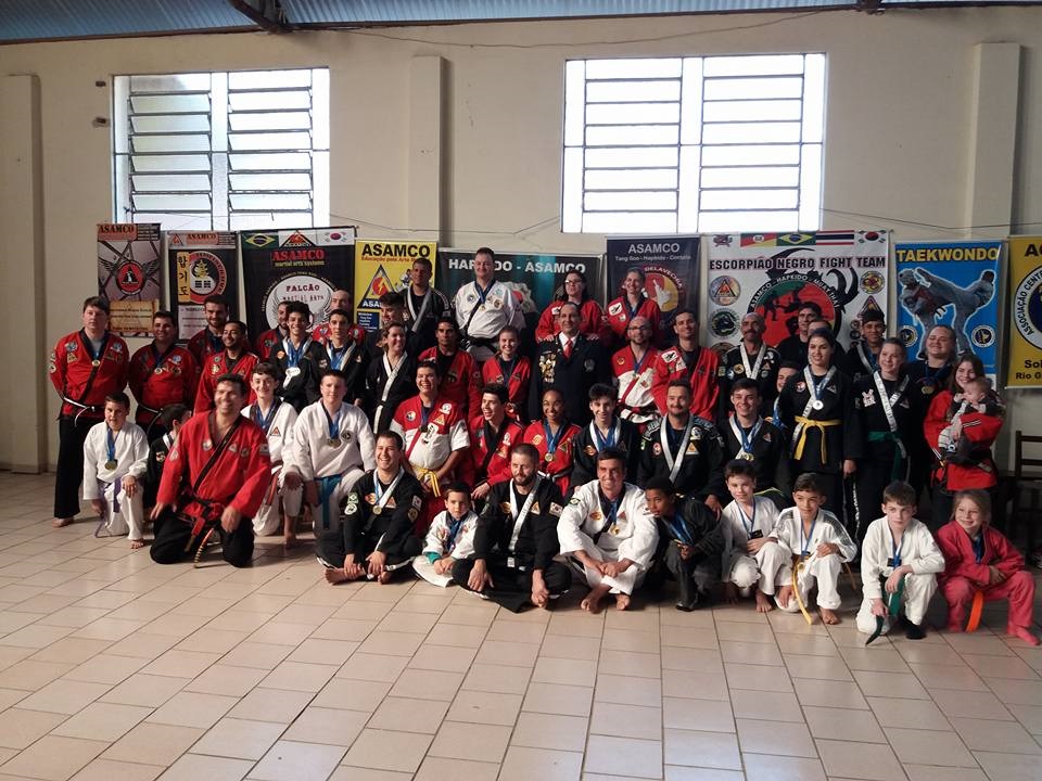 O último fim de semana foi de confraternização e disputas para as equipes de Asamco da região. As escolas Delavechia e Escorpião Negro participaram de mais uma etapa do Campeonato Estadual da modalidade, realizado em Silveira Martins, no Centro do Rio Grande do Sul. Ainda este ano, como parte do calendário de eventos, acontecerá em novembro, em Erechim, o Campeonato Nacional Asamco.