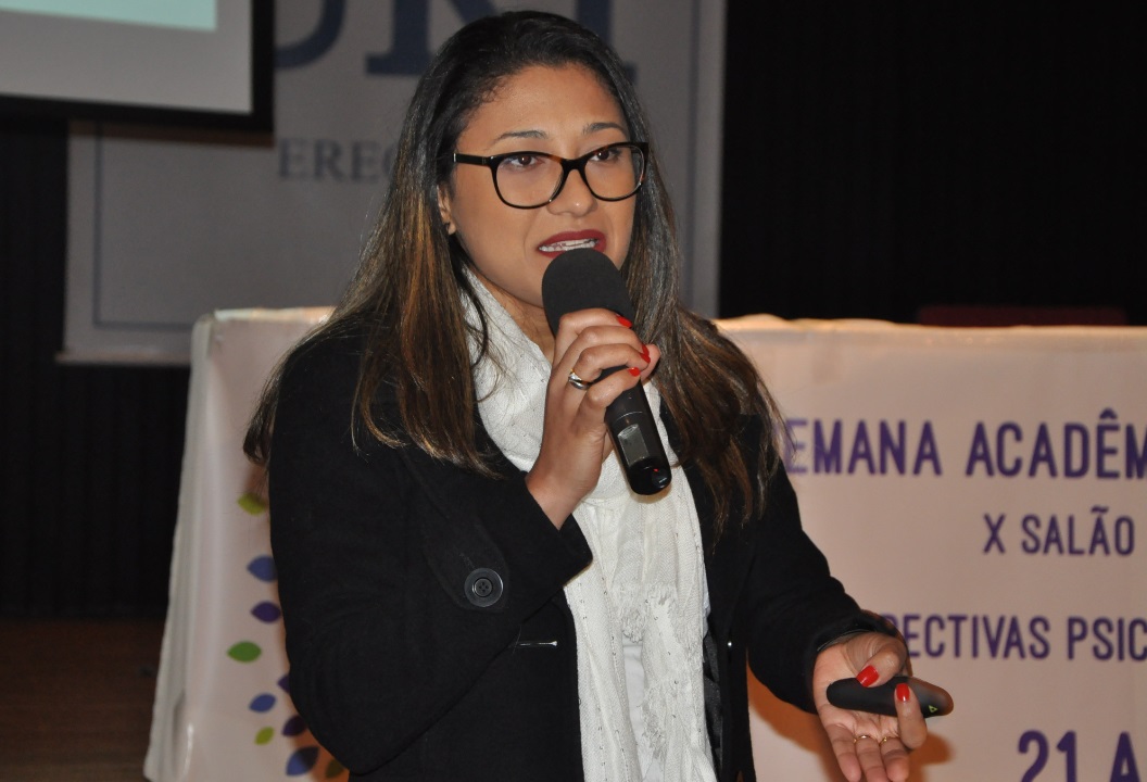 A conferencista Hosana Alves Gonçalves, ao analisar a interface entre a neurociência e a psicologia, enfatizou a necessidade de unir conhecimentos a respeito do processamento cerebral e do comportamento humano. Disse que a neuropsicologia pode contribuir para a psicologia clínica, psicoterapia e avaliação psicológica. “Com isso, passamos a compreender melhor o funcionamento cognitivo nas psicopatologias e no efeito dos psicofármacos”, pontuou a palestrante.