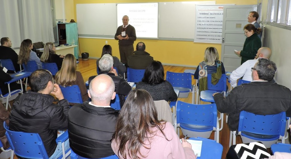 O casal presidente da Escola de Pais – Seccional Erechim, Liliane e Celso Christ, recordou que o movimento particular, voluntário e gratuito iniciou há 50 anos no Brasil e está há 30 anos em Erechim, onde já realizou mais de 100 encontros e beneficiou mais de 5 mil pessoas. “Ele surgiu da necessidade de pais, preocupados com a educação dos filhos. O objetivo é trazer informação e formação, interagindo com o grupo e trocando experiências para melhorar o relacionamento de pais e filhos e cuidadores, já que muitas famílias delegam o cuidar para avós e tios porque trabalham fora. Ao longo dos encontros repassamos valores e a importância de dar limites, o que exige tempo e persistência”, observou Christ, acrescentando que a forma de abordar e o conteúdo transmitido tem base pedagógica.