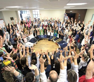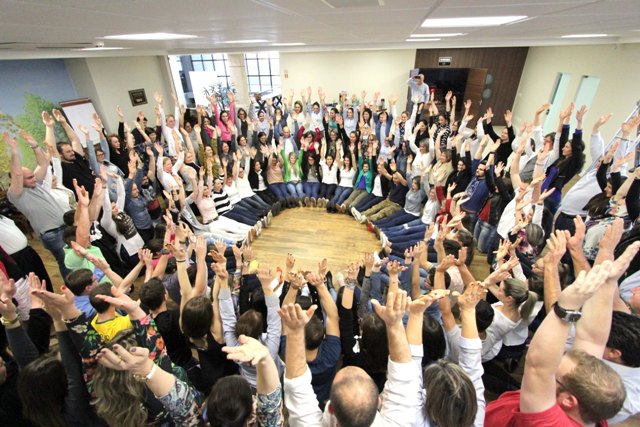 Para fechar o Seminário, os colaboradores foram desafiados a compor uma mandala humana, com movimentos sincronizados. Segundo Sandra Munero, a atividade, que exigiu treino e atenção, reforçou a importância da sinergia, alinhamento, totalidade e