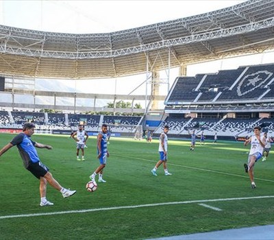 Ontem (12) à tarde o Grêmio realizou o último treinamento antes do confronto diante do Botafogo, amanhã, pelas quartas de final da Copa Libertadores da América. O plantel gremista fez o tradicional reconhecimento de gramado e trabalhou no Estádio Nilton Santos, local da partida.